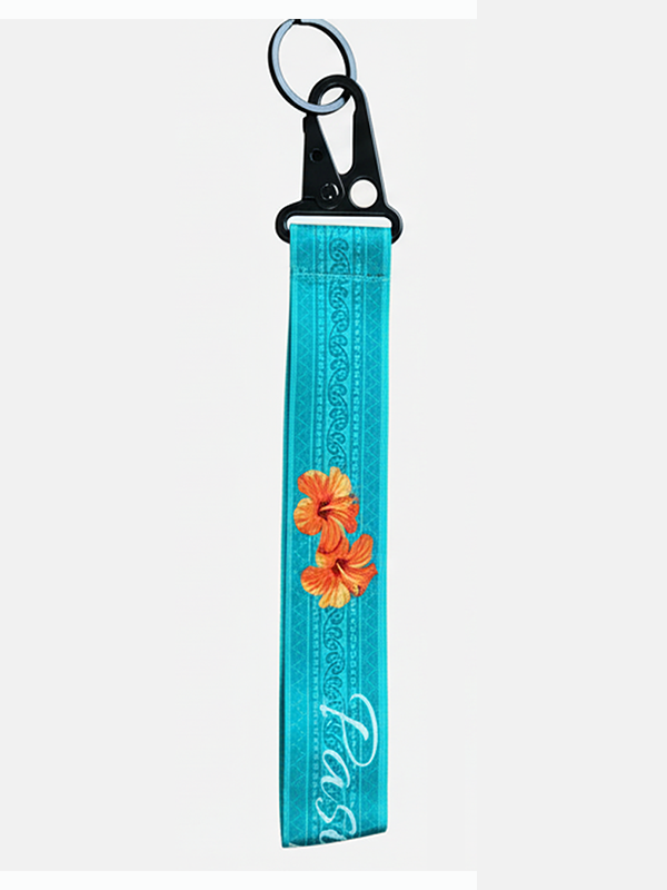 Combining robust functionality with beautiful Pacific designs, these key straps are the perfect everyday accessory. Made with thick, high-quality webbing and finished with sleek black metal hardware, they are built to last. The snap-hook allows for easy attachment to backpacks or purses, while the wrist loop keeps your hands free when you're on the go.